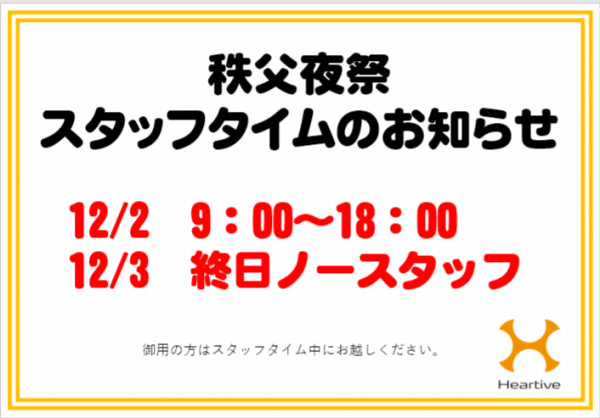 秩父夜祭のスタッフタイムのお知らせ